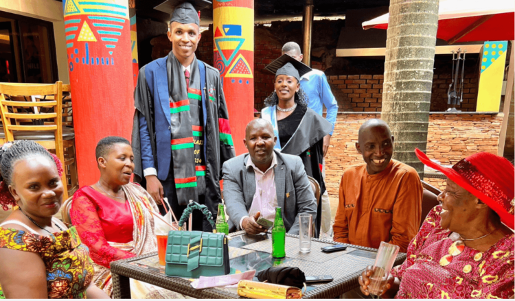 We featured Ian a few weeks ago; here he is with his classmate, Brenda, and a few family members last Friday after their graduation. Brenda is Mustard Seed’s social worker extraordinaire. The group was joined by Bosco and Stuart, who received their degrees a few weeks earlier. Dan, the fifth university graduate from the Pioneer…